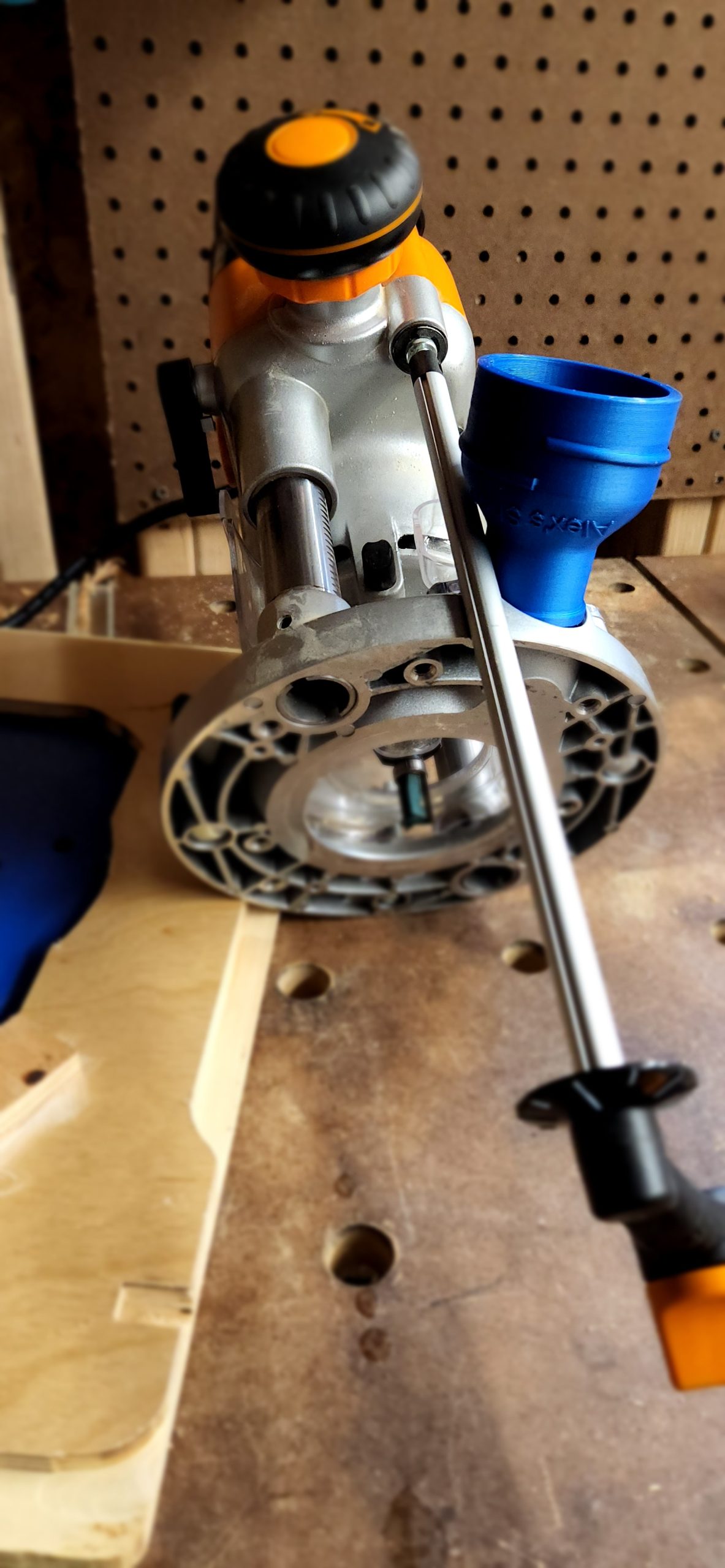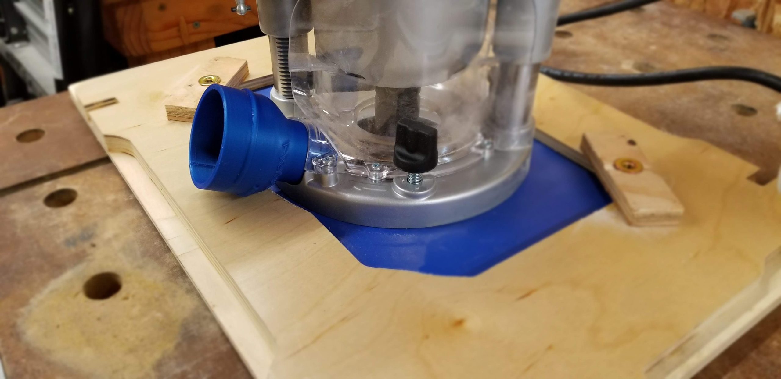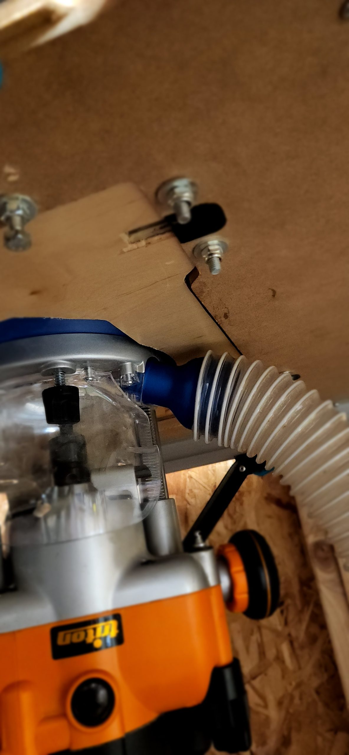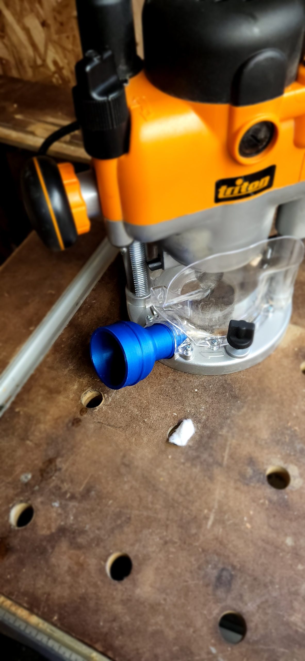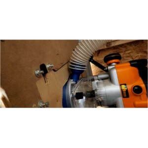 This is a custom-made router dust port adapter designed specifically for the Triton Tra001 router, allowing you to connect a standard 2 1/2″ dust collection hose. The updated version of this adapter has been enhanced to provide space for the Triton height winder, ensuring compatibility and ease of use (see picture for details).